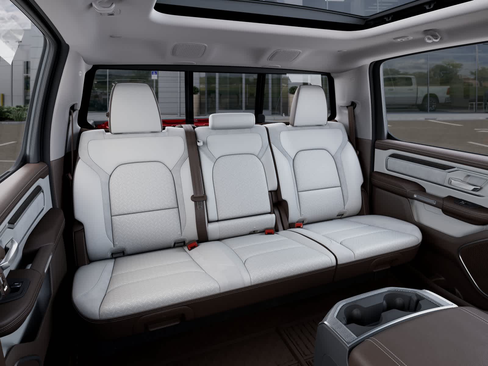 Leather Seats, Navigation, 4x4, Heated Driver Seat, Heated Rear Seat Ram Laramie with Molten Red Pearlcoat exterior and Sea Salt/Bison Brown interior features a 8 Cylinder Engine with 395 HP at 5600 RPM*.