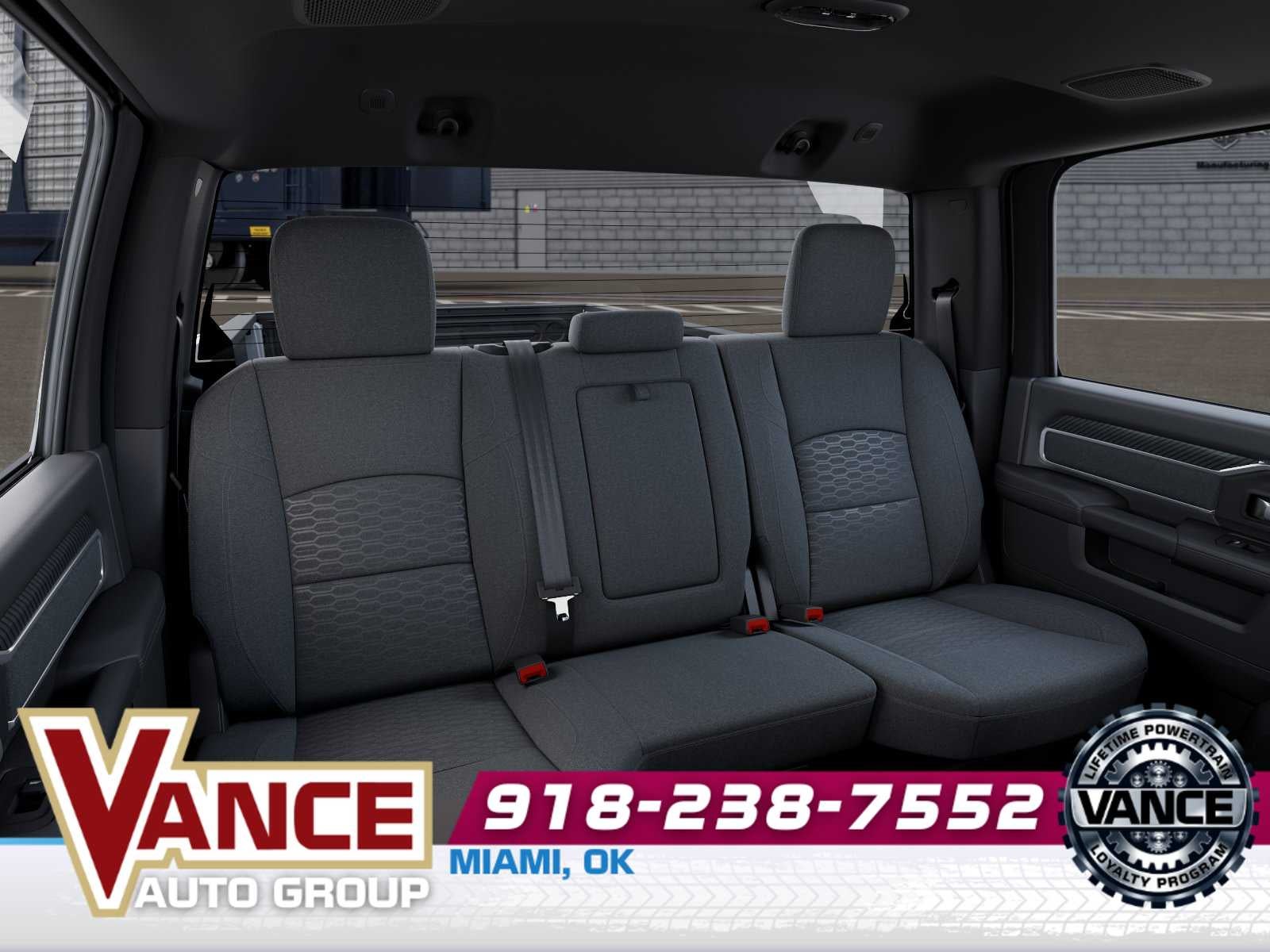 ENGINE: 6.7L I6 CUMMINS HO TURBO DIESEL Selective Catalytic Reduction (Urea), Dual 730 Amp Maintenance Free Batteries, Cummins Turbo Diesel Badge, Heavy Duty Engine Cooling, Current Generation Engine Controller, Diesel Exhaust Brake, Supplemental Heater, 3.42 Axle Ratio, Front Bumper Sight Shields, Capless Fuel Fill w/o Discriminator, BIG HORN LEVEL 1 PLUS EQUIPMENT GROUP For Details Visit DriveUconnect.com, For More Info, Call 800-643-2112, Emergency Vehicle Alert System (EVAS), 12 Touchscreen Display, Glove Box Lamp, Auto Power-Folding Mirrors, Footwell Courtesy Lamp, MOPAR Deployable Bed Step, Alexa Built-In, Forward & Reverse Utility Lights, Locking Lower Glove Box, Remote Start System, 9 Alpine Speakers w/Subwoofer, Disassociated Touchscreen Display, Dual Glove Boxes, 2nd Row In Floor Storage Bins, Rear View Auto Dim Mirror, Rear Dome w/On/Off Switch Lamp, LED Bed Lighting, GPS Navigation, SiriusXM w/360L, Connected Travel & Traffic Services, Foam Bottle Insert (Door Trim Panel), Big Horn IP Badge, Off-Road Information Pages, Trailer Tow Pages, HD Radio, Radio: Uconnect 5 Nav w/12.0 Display, Power Heated Fold, DUAL REAR WHEELS Clearance Lamps, Tires: LT235/80R17E BSW All Season, 17 Steel Spare Wheel, Box & Rear Fender Clearance Lamps, 6000# Front Axle w/Hub Ext, Wheels: 17 x 6.0 Polished Aluminum, Nexen Brand Tires, GVWR: 14,000 lb, Rear Wheelhouse Liners, BLACK, PREMIUM CLOTH BUCKET SEATS Bucket Seats, Rear 60/40 Folding Seat, Power Adjust 8-Way Driver Seat, Folding Flat Load Floor Storage, Front Seat Back Map Pockets, Power 2-Way Driver Lumbar Adjust, Full Length Upgraded Floor Console, TRANSMISSION: 8-SPEED TORQUEFLITE HD AUTOMATIC.