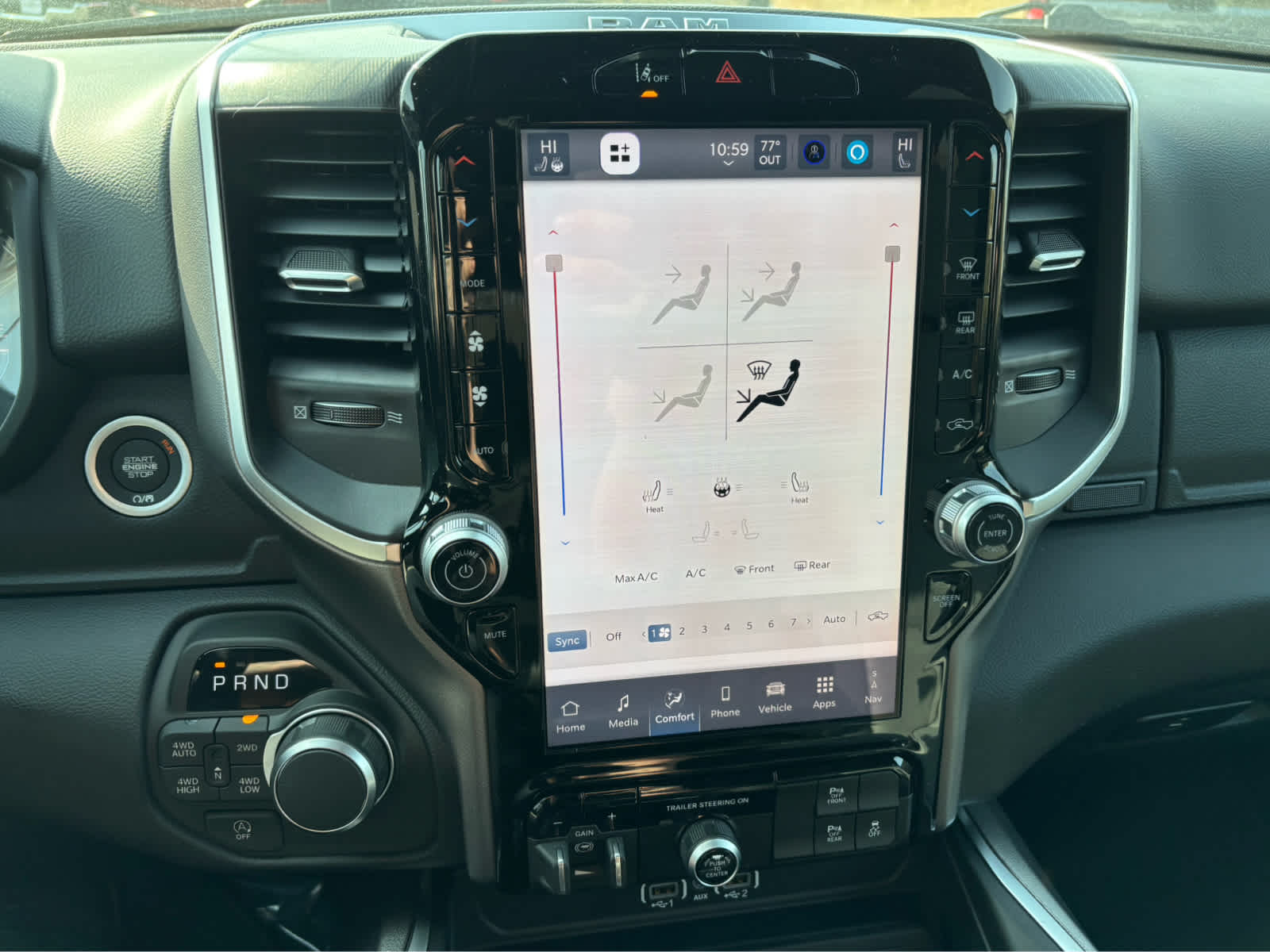 SiriusXM Radio Service, Power Adjustable Pedals, Leather Wrapped Steering Wheel, 12 Touchscreen Display, Glove Box Lamp, Auto Power-Folding Mirrors, 115V Auxiliary Rear Power Outlet, Media Hub w/2 Charge Only USBs, Heated Front Seats, Security Alarm, Black Premium Power Mirrors, Premium Overhead Console, 9 Amplified Speakers w/Subwoofer, Disassociated Touchscreen Display, Body Color Fender Flares, Remote Tailgate Release, 115V Auxiliary Power Outlet, LED Dome Lamp w/On/Off Switch, Universal Garage Door Opener, 2nd Row In Floor Storage Bins, Sun Visors w/Illuminated Vanity Mirrors, LED Footwell Lighting, Rear Window Defroster, Rear View Auto Dim Mirror, Rear Power Sliding Window, GPS Navigation, Overhead LED Lamps, Wheels: 20 x 9 Aluminum Chrome Clad (WRK), Tires: 275/55R20 OWL All, Active Noise Control System, Heavy Duty Engine Cooling, Passive Tuned Mass Damper, GVWR: 7,100 lbs, Dual Rear Exhaust w/Bright Tips, G/T Exhaust, 18 Aluminum Spare Wheel, TRANSMISSION: 8-SPEED AUTOMATIC (8HP75). Ram Big Horn with Bright White Clearcoat exterior and Diesel Gray/Black interior features a 8 Cylinder Engine with 395 HP at 5600 RPM*.
