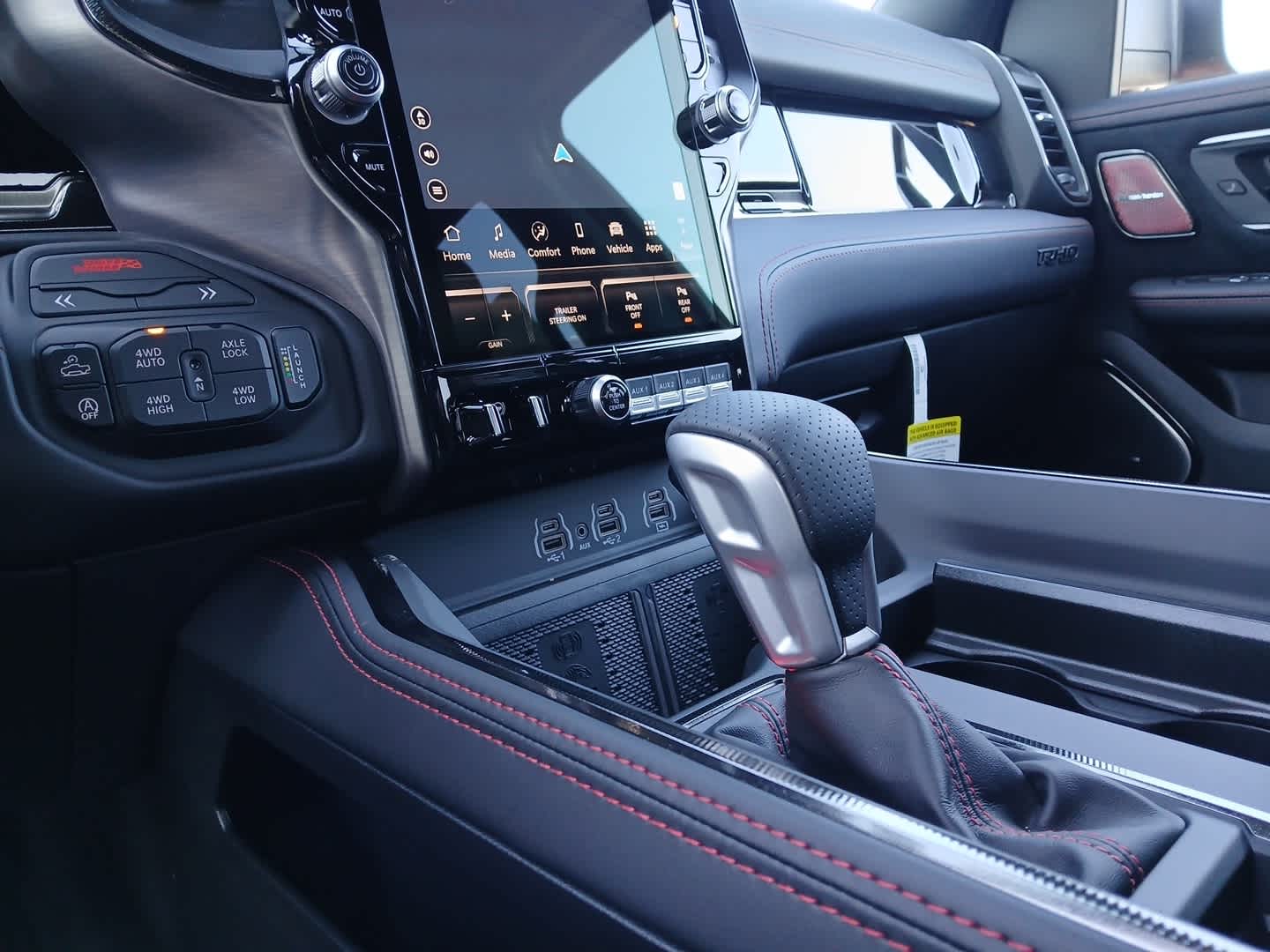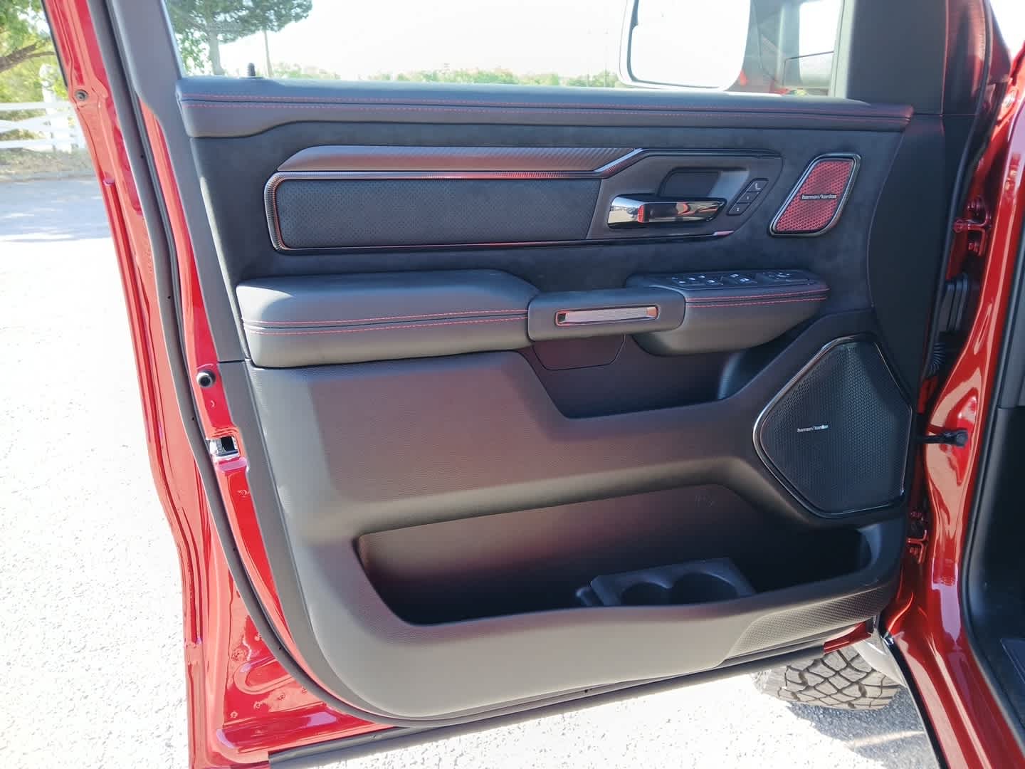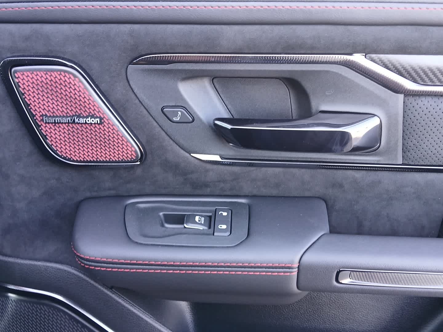 Full Length Premium Upgraded Floor Console, Surround View Camera System, Rain Sensitive Windshield Wipers, LED CHMSL Lamp, Power Adjustable Pedals w/Memory, Front Passenger Interactive Display, Traffic Sign Recognition, Hands-Free Active Driving Assist System, Front Passenger Power Seat Back Massage, Head Up Display, Evasive Steer Assist, Heated Second Row Seats, Drowsy Driver Detection, Driver Power Seat Back Massage, Intersection Collision Assist System, Leather/Carbon Flat-Bottom Steering Wheel, Smartphone As A Key Capable, 14.4 Touchscreen Display, Driver/Passenger Wrapped Assist Handles, Dual Wireless Charging Pad, Radio: Uconnect 5 Nav w/14.4 Display, Ventilated Rear Seats, Rear 60/40 Folding Split Recline Seat, 240 Amp Alternator, Ventilated Front Seats, harman/kardon® 19 Speaker, Dome Dual LED Reading Lamp, RED INTERIOR ACCENTS, MOPAR RHO HOOD GRAPHICS, Trailer Reverse Steering Control, Trailer Tire Pressure Monitoring System, MOPAR RHO EXTERIOR GRAPHICS, MOLTEN RED PEARLCOAT, (STD), (STD). Excellent Condition