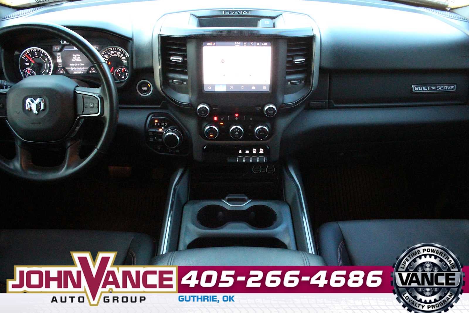 BUILT-TO-SERVE EDITION Black Door Handles, Steering Gear Skid Plate, Falken Brand Tires, LED Taillamps, Black Headlamp Bezels, Front Suspension Skid Plate, Raised Ride Height, US Flag Decal, Tires: 275/55R20 OWL All-Terrain, Front Extra HD Shock Absorbers, Front LED Fog Lamps, Tire: Full Size Spare, LED Reflector Headlamps, Black Rear Bumper, E-Locker Rear Axle, RAM Grille Badge - Black, 9 Amplified Speakers w/Subwoofer, Body Color Fender Flares, Grille Surround 1 Black Texture 1 Black, Rear Extra HD Shock Absorbers, Black Exterior Truck Badging, Built-To-Serve Edition I/P Badge, Tow Hooks, Wheels: 20" x 9" Aluminum, Black Onyx Interior Accent, MOPAR Lockable Console Storage, Dual Exhaust w/Black Tips, Transfer Case Skid Plate, Fuel Tank Skid Plate, MOPAR Front & Rear Rubber Floor Mats, ENGINE: 5.7L V8 HEMI MDS VVT ETORQUE Active Noise Control System, Heavy Duty Engine Cooling, Passive Tuned Mass Damper, GPEC 5 Engine Controller, GVWR: 7,100 lbs, Dual Rear Exhaust w/Bright Tips, HEMI Badge, 23 Gallon Fuel Tank, 18" Aluminum Spare Wheel, BIG HORN LEVEL 2 EQUIPMENT GROUP Google Android Auto®, SiriusXM Radio Service, Bluetooth® Handsfree Phone & Audio, USB Host Flip, Rear Window Defroster, For Details, Visit DriveUconnect.com, Integrated Center Stack Radio, ParkSense Front/Rear Park Assist w/Stop, Rear View Auto Dim Mirror, Power Adjustable Pedals, Rear Power Sliding Window, Rear Dome w/On/Off Switch Lamp, Connectivity - US/Canada, Glove Box Lamp, 4G LTE Wi-Fi Hot Spot, 115V Auxiliary Rear Power Outlet, Media Hub w/2 Charge Only USBs, Exterior Mirrors w/Heating Element, Power 8-Way Driver Seat, Auto Dim Exterior Driver Mirror, Heated Front Seats, Radio: Uconnect 5 W w/8.4" Display, Heated Steering Wheel, 8.4" Touchscreen Display, Class IV Receiver Hitch, Security Alarm, Black Premium Power Mirrors, Apple CarPlay®, Big Horn IP, MOPAR BLACK TUBULAR SIDE STEPS, TRANSMISSION: 8-SPEED AUTOMATIC (8HP75). Ram Big Horn with Diamond Black Crystal Pearlcoat exterior and Black interior features a 8 Cylinder Engine with 305 HP at 6400 RPM*.