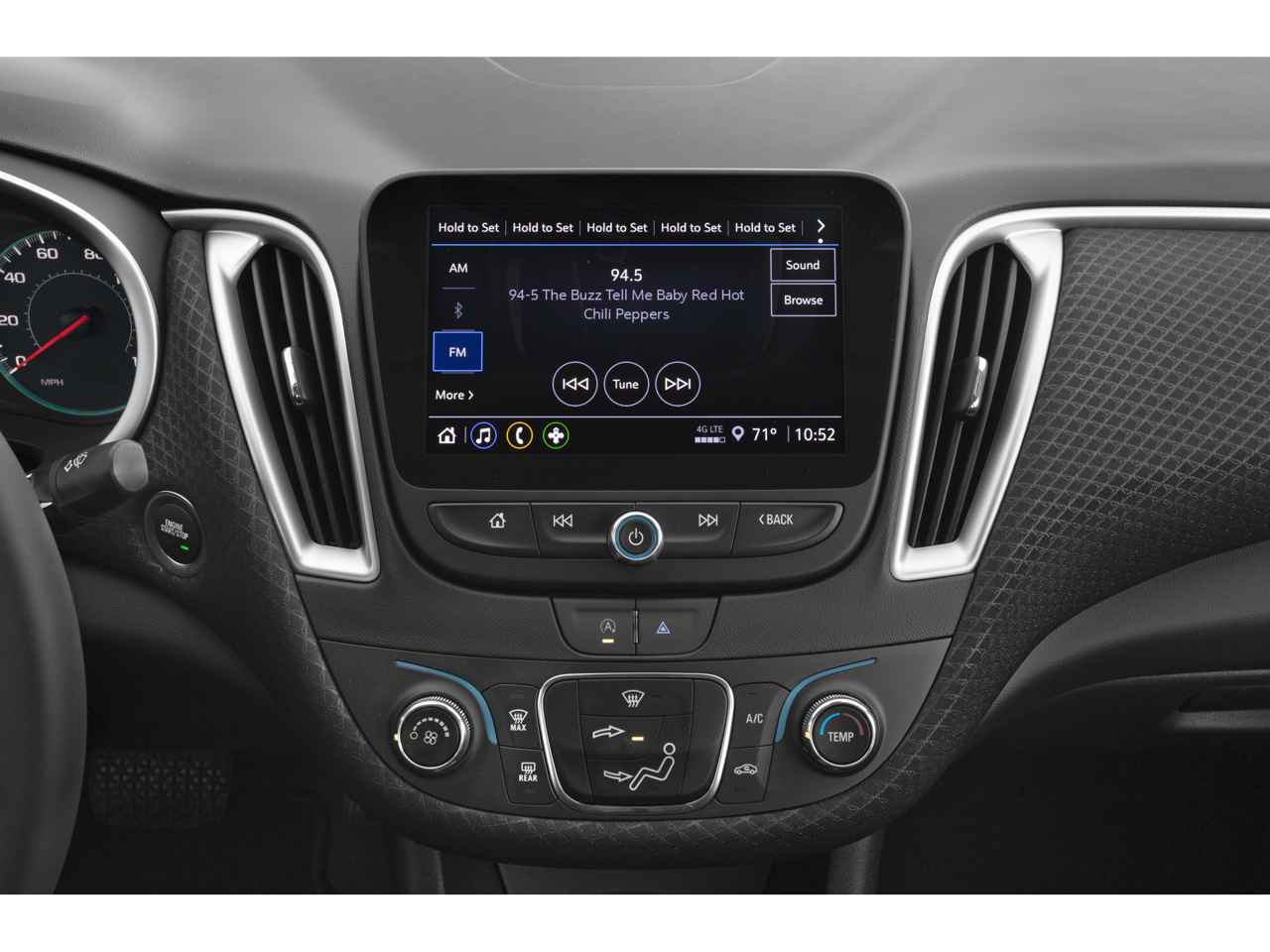 - Audio system, Chevrolet Infotainment 3 system, 8" diagonal color touchscreen, AM/FM stereo. Additional features for compatible phones include: Bluetooth® audio streaming for 2 active devices, voice command pass-through to phone, Apple CarPlay and Android Auto capable.
